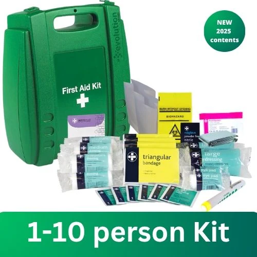 Irish (HSA) recommended first aid kit – Eye wash ( 1 x 500ml bottle ) and burn dressings ( 1 small & 1 large water-based burn dressings ) can be purchased separately.